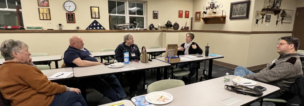 Attendance: 6 Members, 0 Guests. The first member meeting of 2026 began with dinner and conversation, followed by Happy Dollars as members shared recent joys—from reconnecting with old friends and hitting the ski slopes to tackling home projects and enjoying quiet time by the fire with a cozy pup.