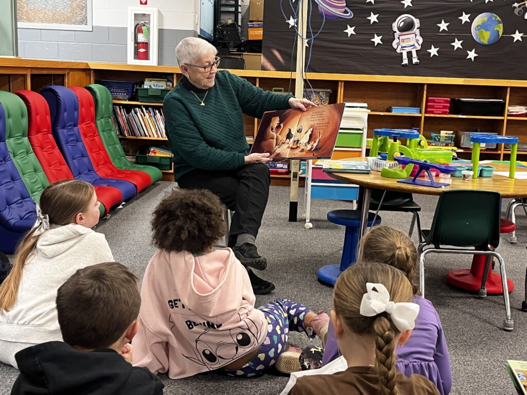 On March 3, Kiwanis visited Woodland Heights Elementary School as part of the Kiwanis KARES program to celebrate reading and the imaginative world of Dr. Seuss. Hosted by Mrs. Robbie Neylon for WHS 3rd-grade classes, the event brought together students and Kiwanis volunteers for a morning focused on the joy of books.